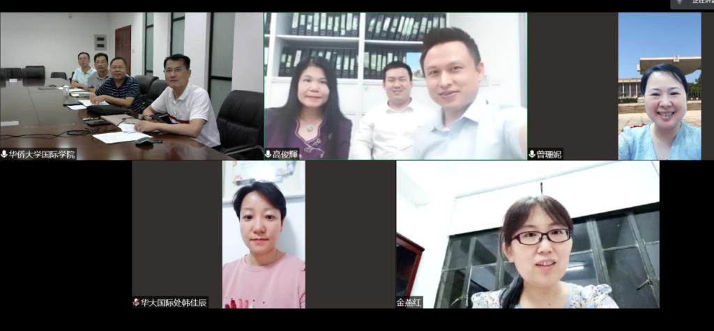 与澳门科技大学博雅学院召开云端会议,探讨国际商务专业(全英文教学)的一学期交流合作事宜。澳门科技大学博雅学院院长梁文慧、华侨大学国际交流合作处处长曾珊妮、博彩网站