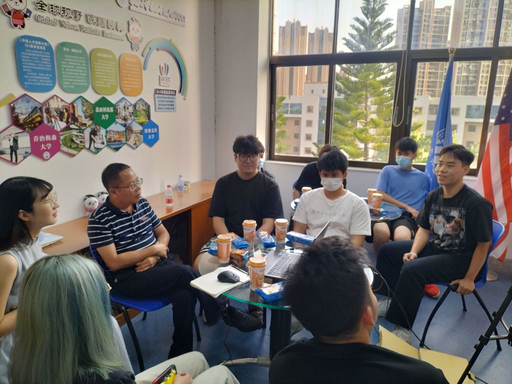举办2022年境外新生座谈会,学院党委书记谢友福、团委书记韩旭、辅导员李岩、陈仕航以及16名境外新生通过线上、线下的方式参加此次会议。