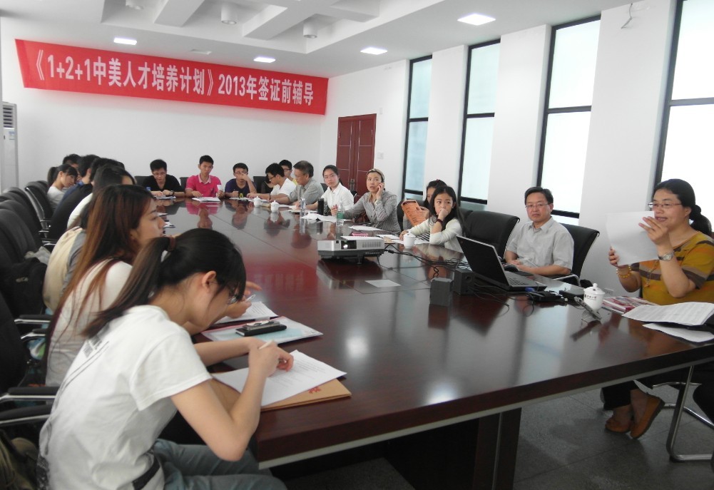 吴琴副总监向同学们分别介绍了《中美人才培养计划》项目的基本情况,本次学生J-1签证的基本知识,办理签证流程,并用往年学生签证的具体案例分析签证成功的原因和方法,强调学生从三个方面准备赴美签证,即赴美留学的理由,提供个人留学资金证明的依据和回国的理由,鼓励同学要增强个人自信心,积极准备签证资料并同时安排好课程的学习。